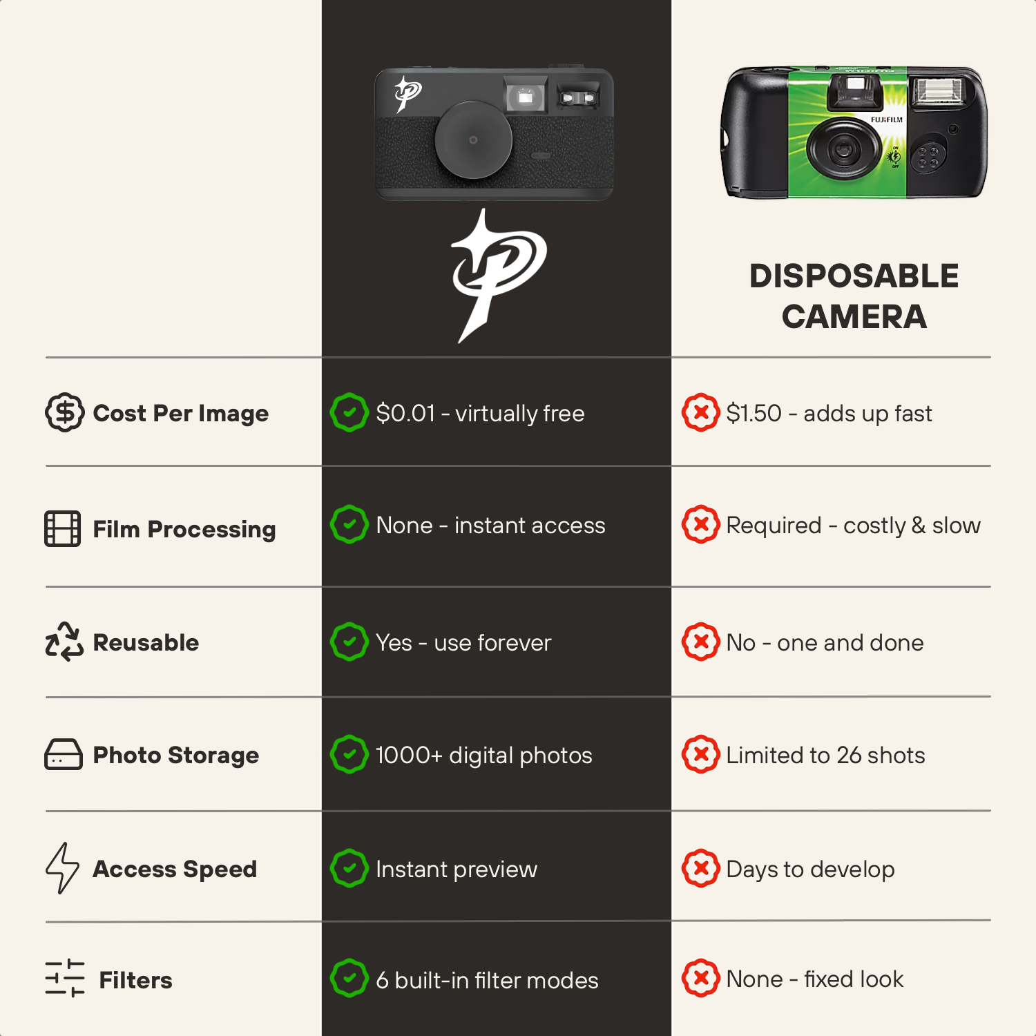 Film nostalgia meets digital convenience. No waste, just intentional moments.